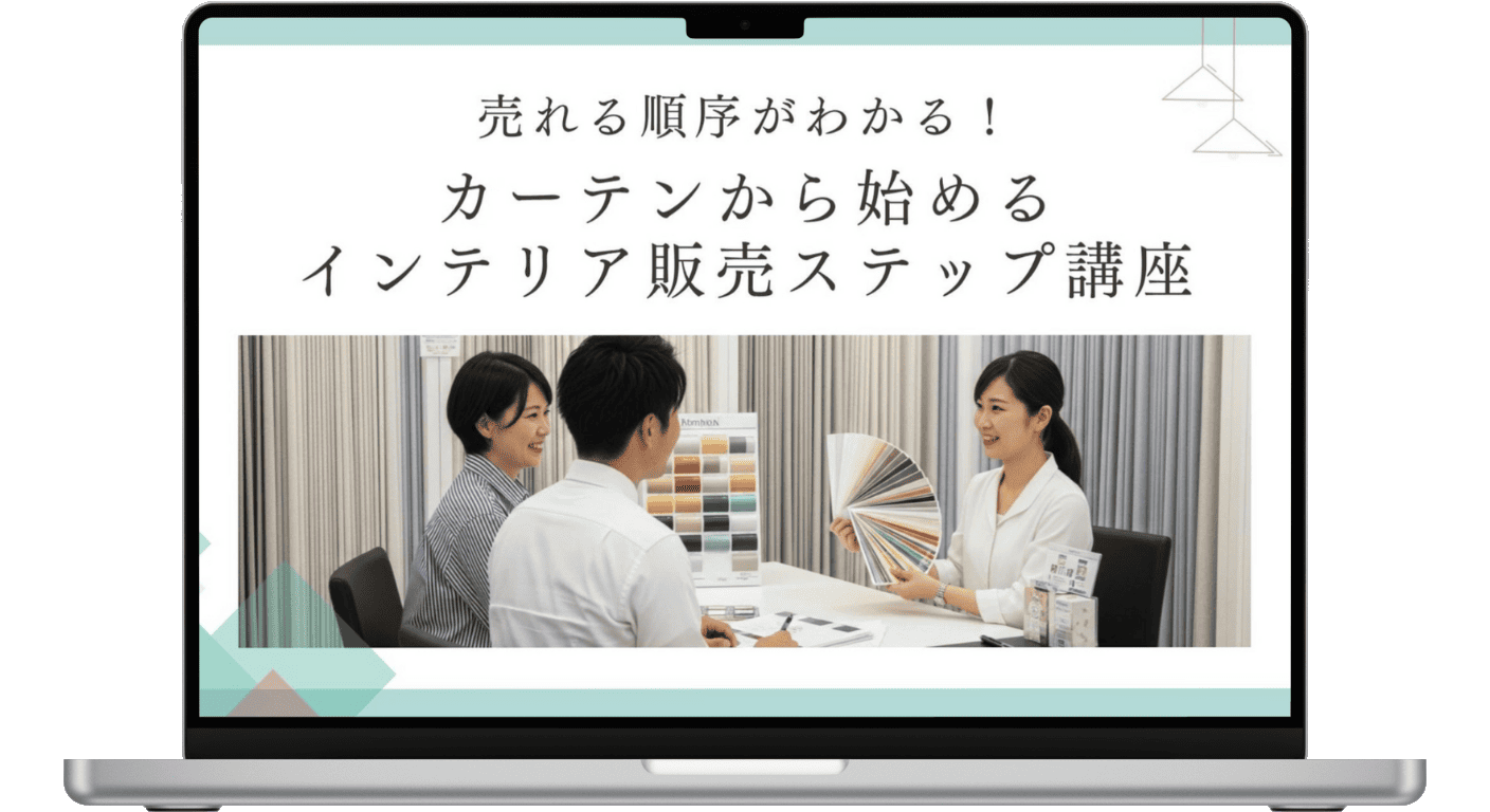 家具販売の現場にそのまま使える仕組みが揃っており、スタッフ教育にも活用可能。